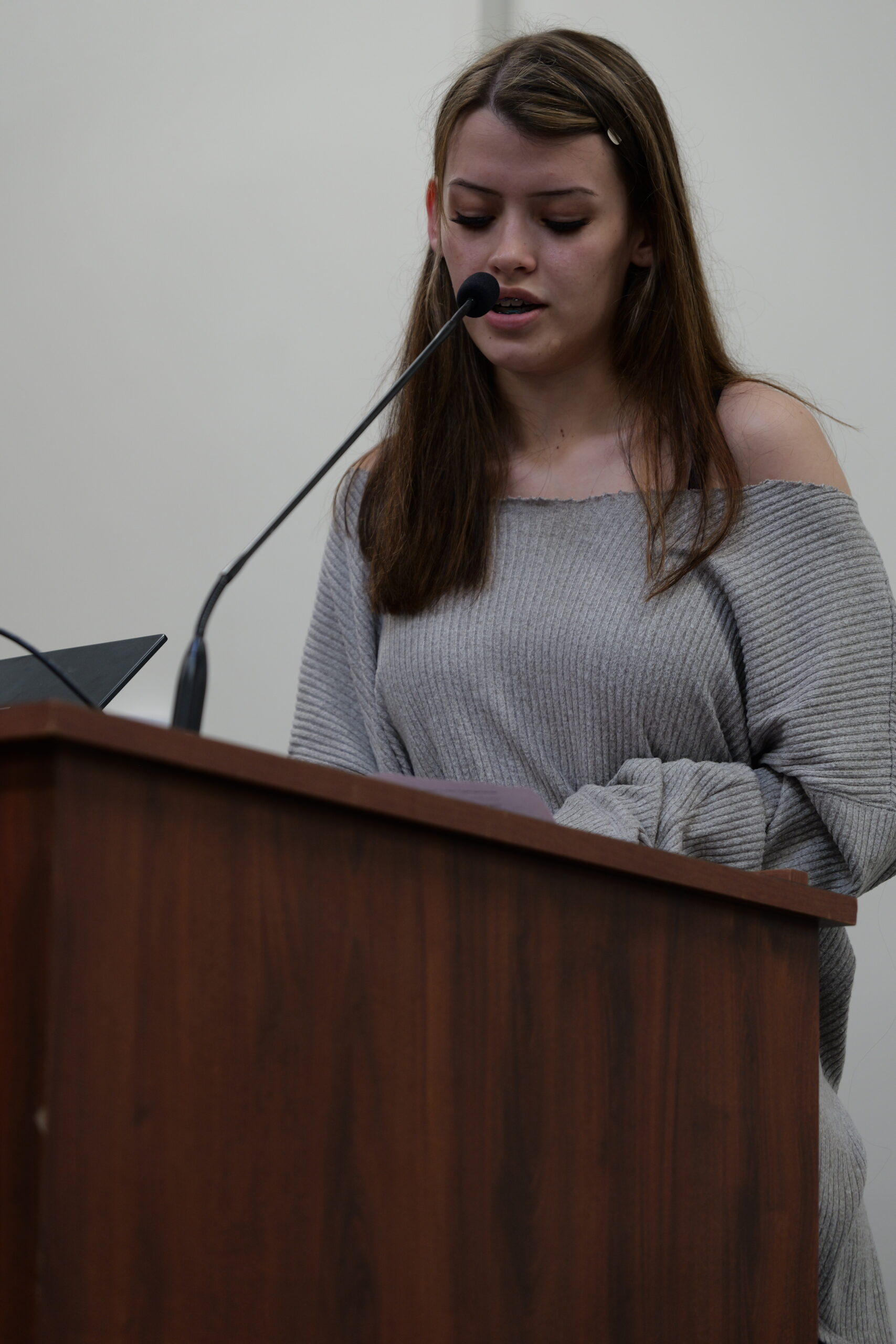 Associate Superintendent Analee Kredel then recognized the winning entries across all categories. Rebecca, who earned the top award, was invited to read her essay aloud.