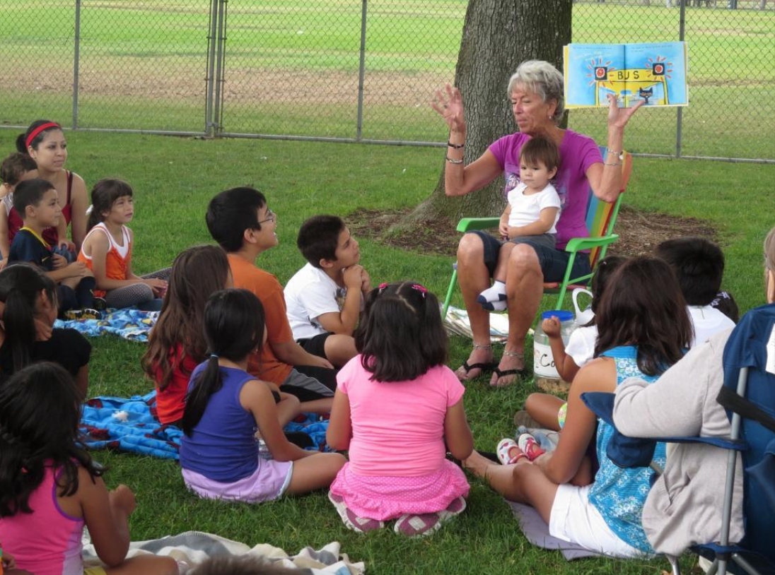 Word spread about what Milch was doing, and the group of 10 students who walked or took public transportation each week to hear her read grew to a hundred students. While she reads, the teacher also engages children in conversations about the books and plays word games with them.