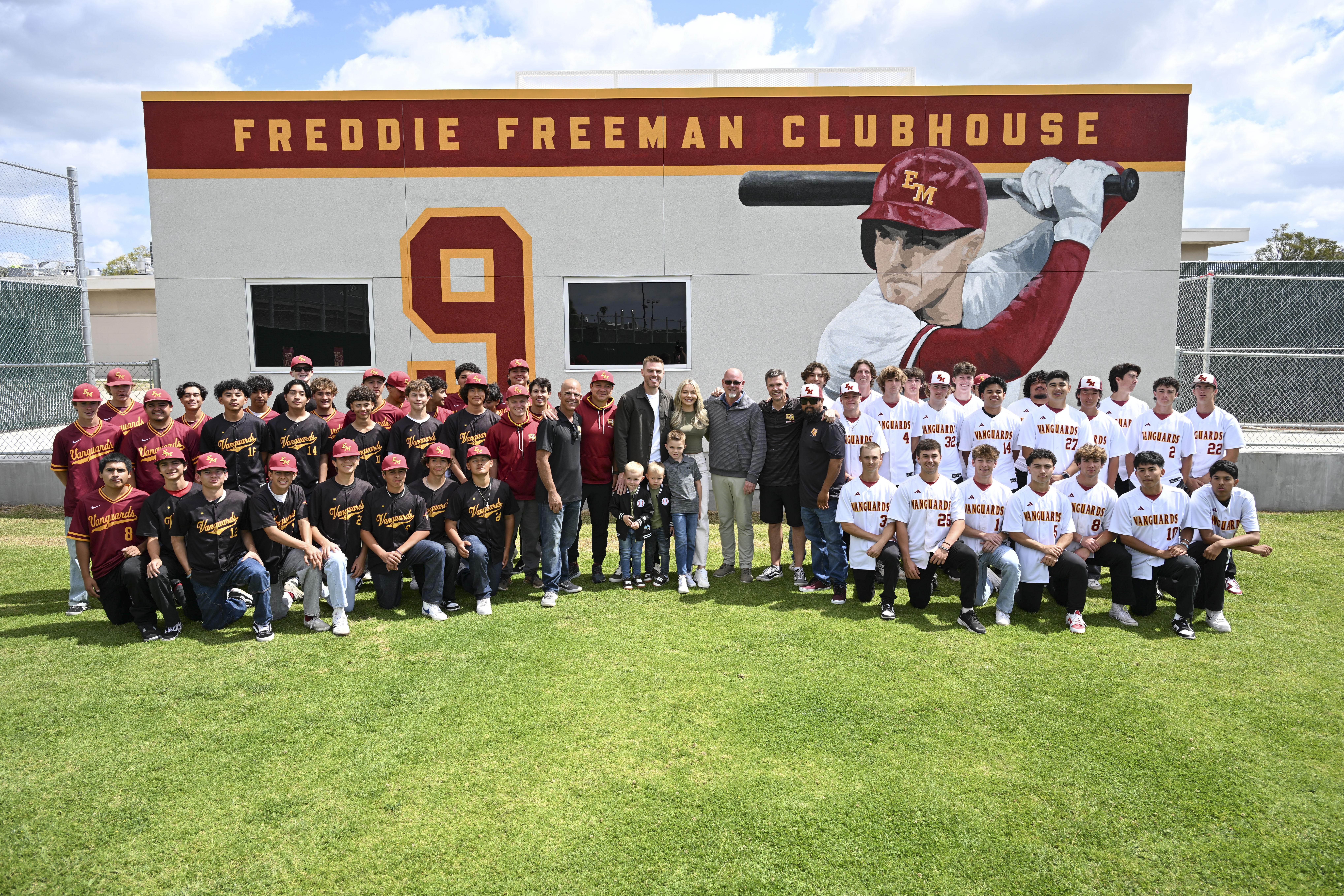 On March 26, the pro athlete and his family were joined by past and present El Modena Vanguard baseball coaches, players and their families, along with administrators from the Orange Unified School District and community members, to commemorate the ribbon-cutting and unveiling of the new Freddie Freeman Clubhouse, bearing his name.