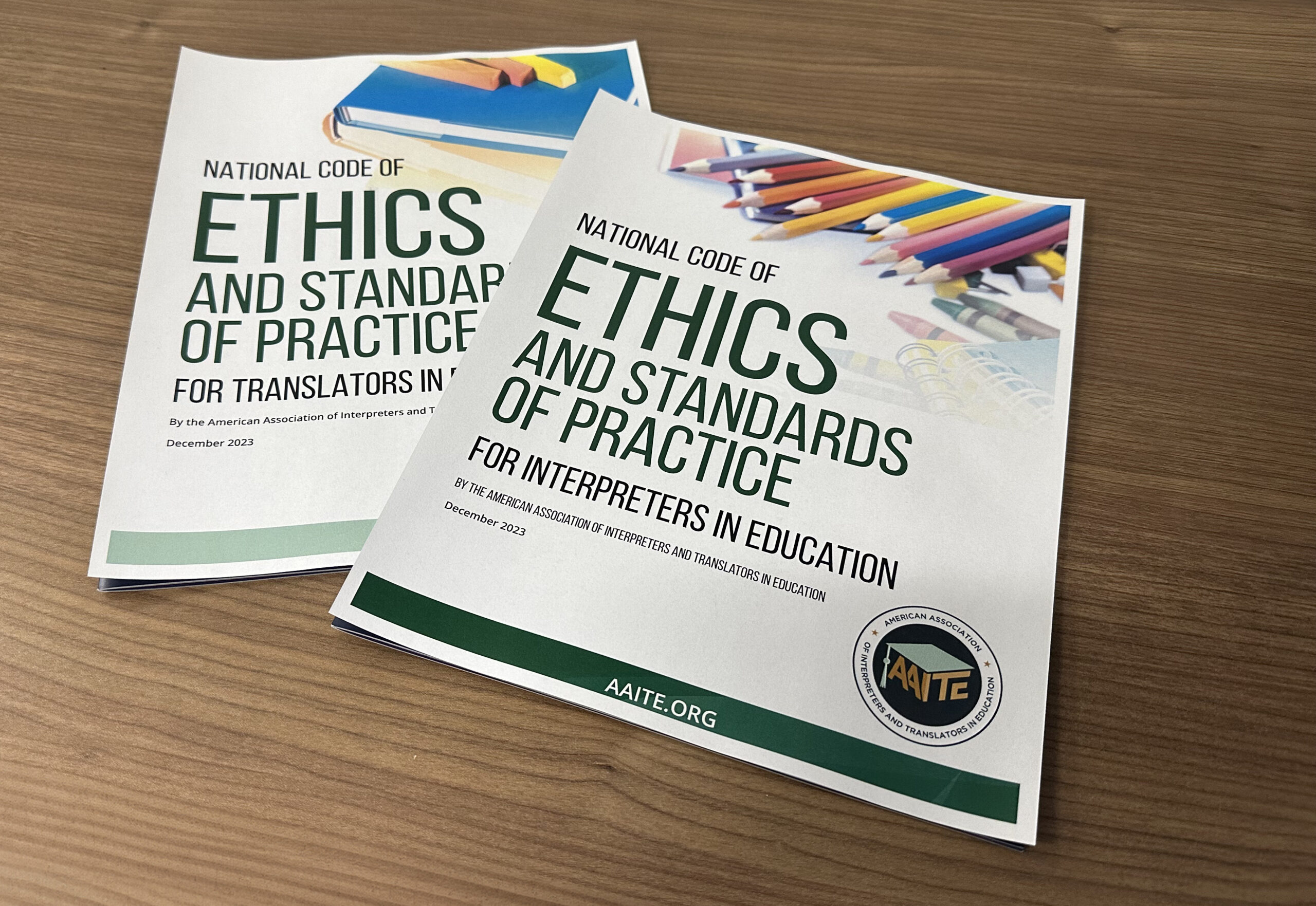 On Dec. 12, AAITE formally released its 41-page National Code of Ethics and Standards of Practice for Interpreters in Education and the National Code of Ethics and Standards of Practice for Translators in Education, which checks in at 33 pages.