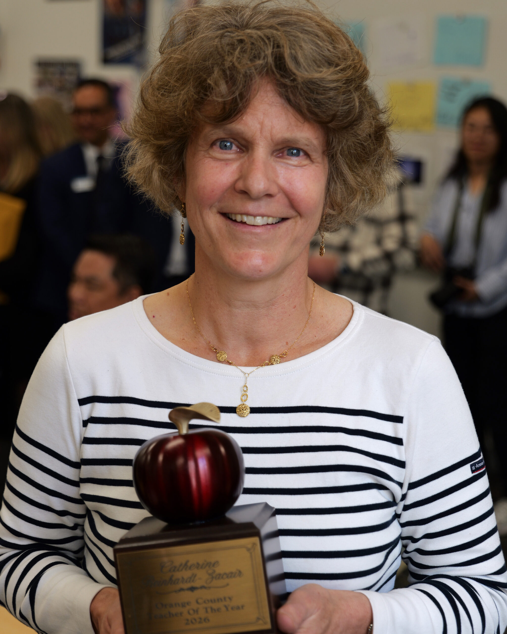All six Teachers of the Year will be formally honored at a gala on Nov. 7 at the Disneyland Hotel, where each K-12 educator will receive a $25,000 award from the Orange County Teachers of the Year Award Foundation, established by the William, Jeff and Jennifer Gross Family Foundation.