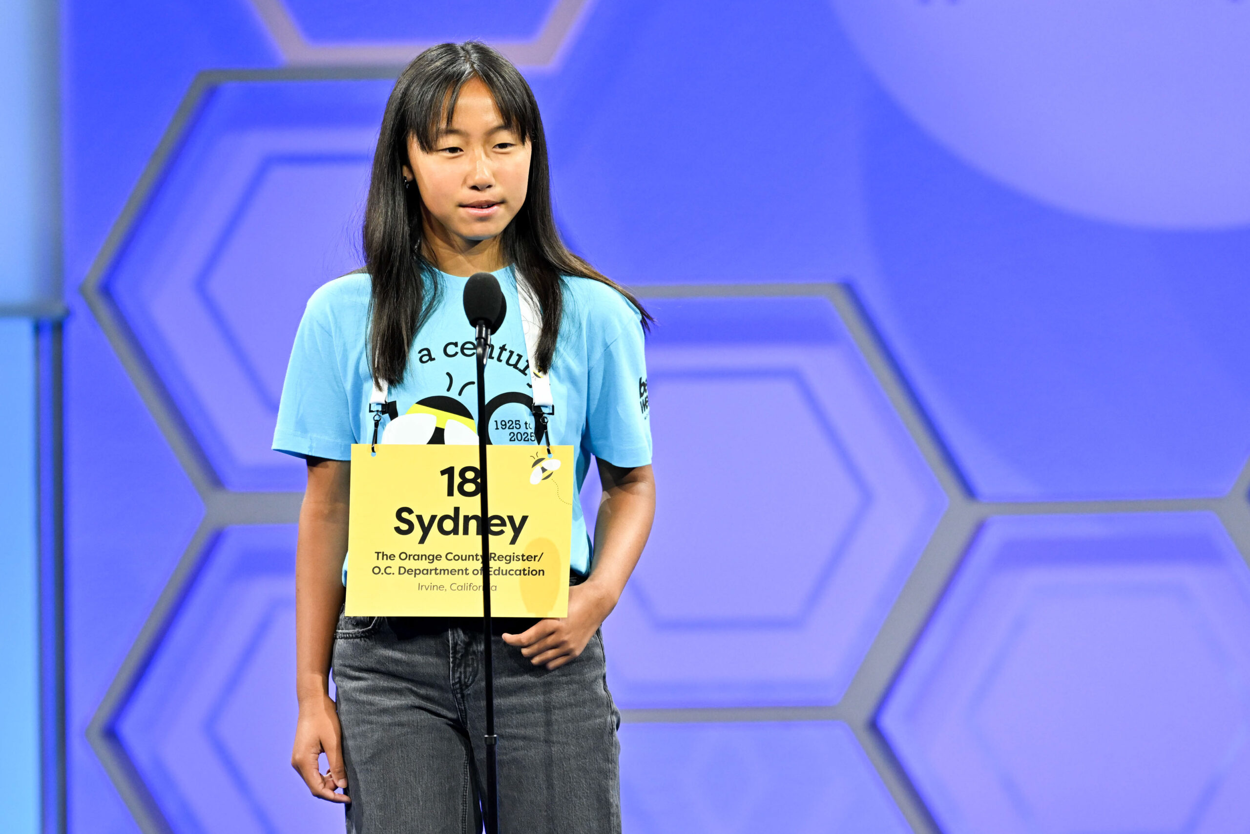 Sydney, a student at El Rancho Charter School in Anaheim, successfully advanced through two rounds of the competition on Tuesday, spelling the word “merak” and correctly defining “awry.” She was eliminated in the third round after not receiving a high enough score on the written test to advance, tying for 100th place.