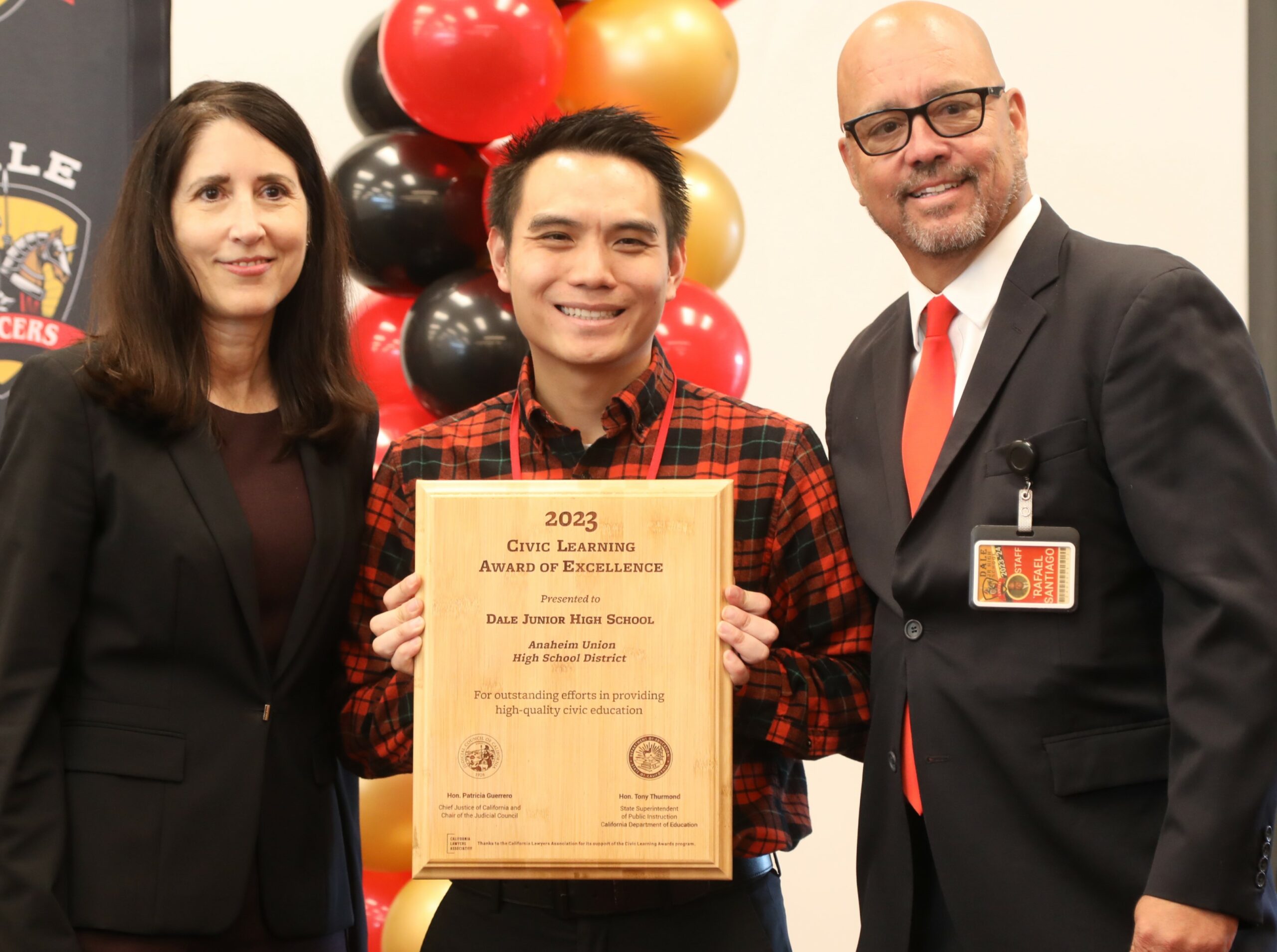 California Chief Justice Patricia Guerrero visited Dale Junior High School and Gilbert High School on Monday, Oct. 23 to honor students and staff with the top civics education award in the state.