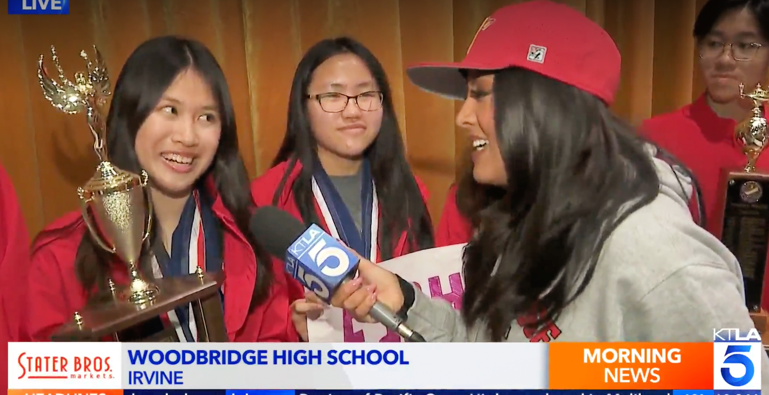 KTLA 5 Morning News reporter Megan Telles was live in Irvine on Wednesday morning to help Woodbridge High School celebrate its latest Academic Decathlon victory.