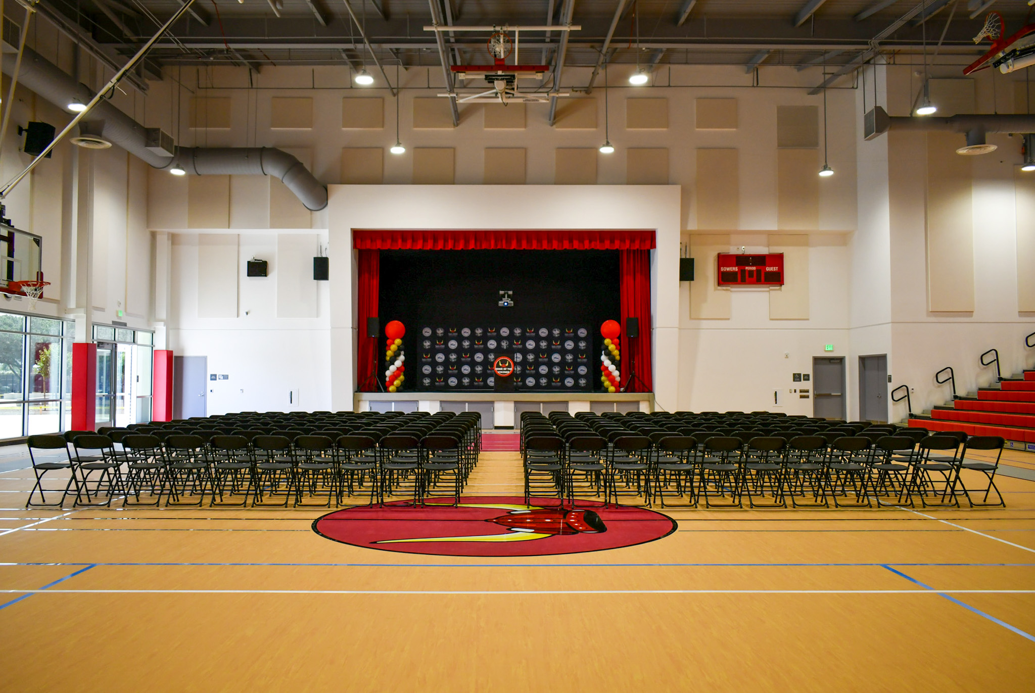 District officials, staff, community members and construction partners gathered at the campus to mark the unveiling of several new amenities, including a 53,164-square-foot gym that doubles as a multipurpose space with a stage and audio-visual equipment. Also featured are new hardscape sport court areas, a strategically positioned locker room building, improved parking, and safer pedestrian and bike access points.